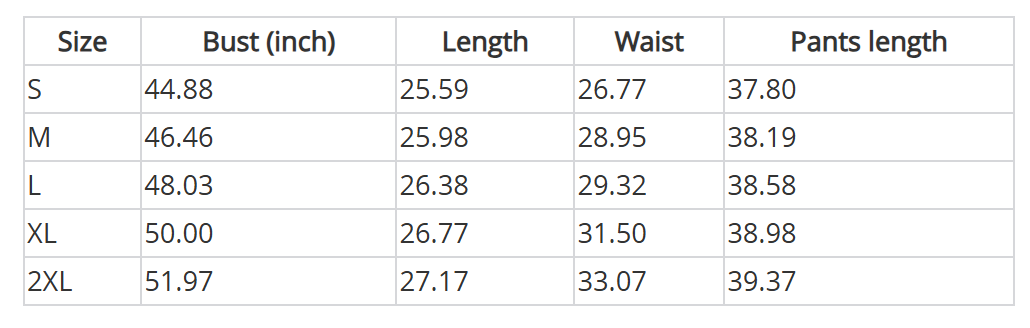 Size Chart:inch