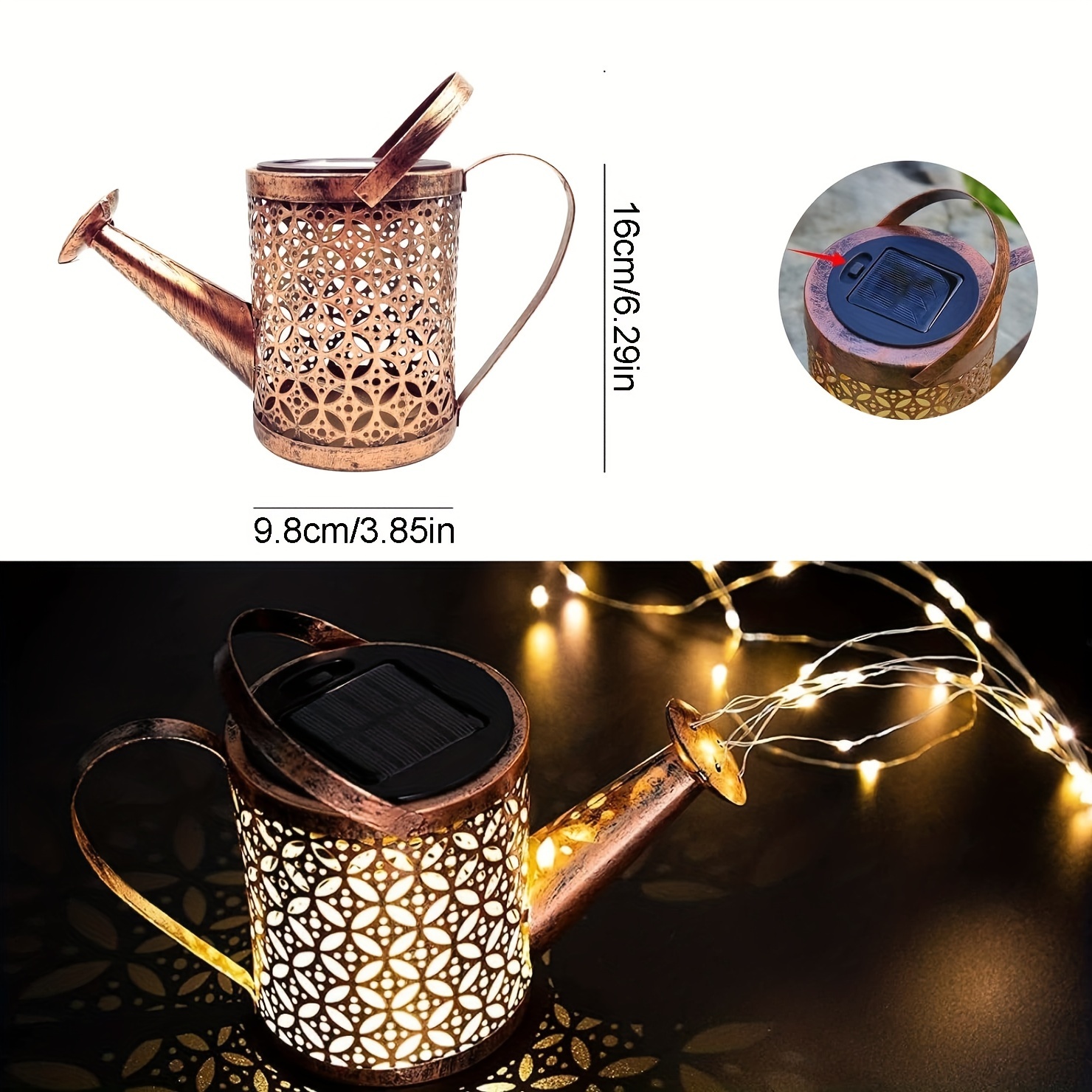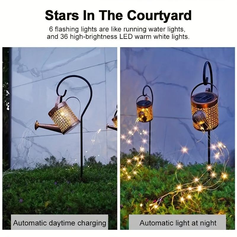 【Perfect Gift for Indoor and Outdoor Use】 Solar watering can light provides 2 usage modes. You can use the included shepherd hook to place anywhere in your garden and let it water your plants with flowing stars. You can also place it directly on its own, which is a good decoration for indoor tables, steps, watering plants, tree vines, potted plants or balconies. Great gift for dad, mom, grandparents, loved ones, friends and DIY enthusiasts.